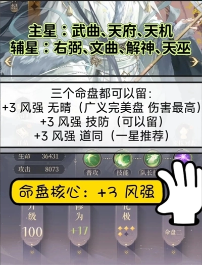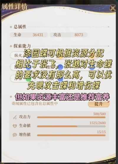 优先投喂攻击蝶与增伤蝶,资源充裕的情况下可以进行深度培养。命盘的核心属性为+3风强。