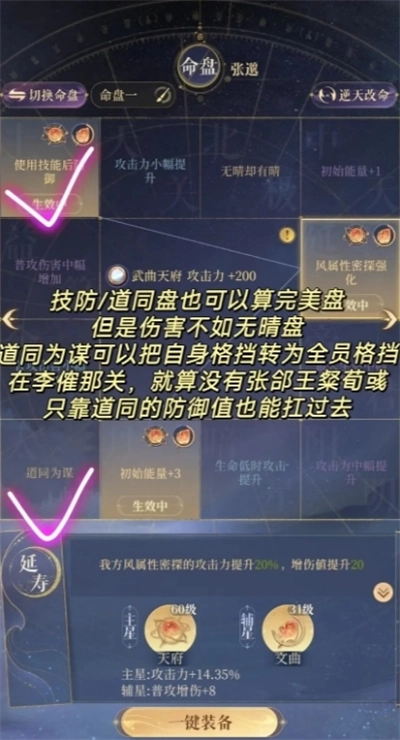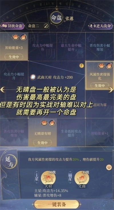 这里还得额外说一句,建议殿下开启双命盘。毕竟无晴盘在部分对局里,很难和队友的技能轴完美契合,不像道同盘和技防盘那样操作顺手,但无晴盘的输出能力更强,实战价值也更高。
