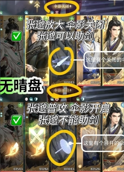 +3风强无晴:可通过技能、普攻、防御改变伞影状态
