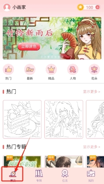 2、我们点击首页,在这里可以找到各种画稿。