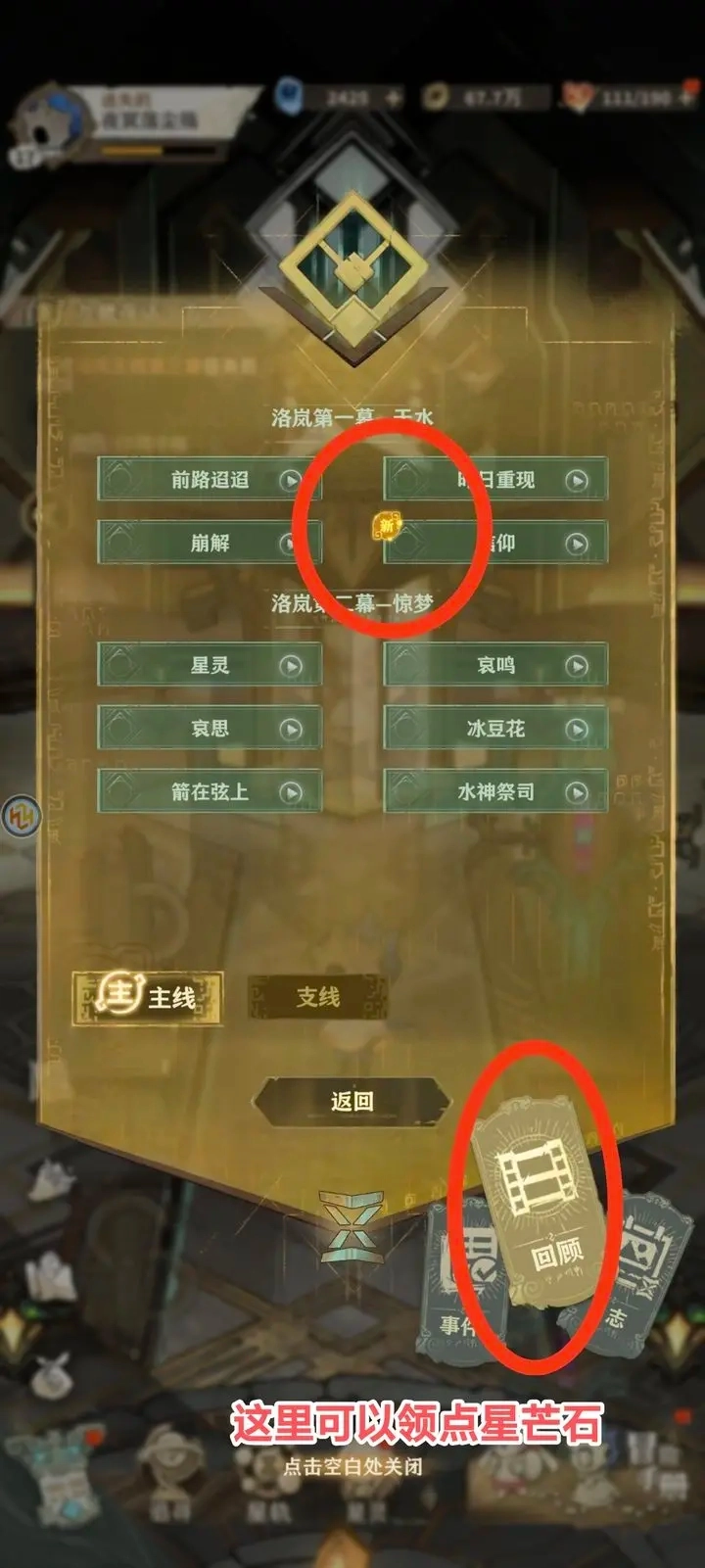 任务栏那里手账进去点回顾可以领一些遗漏的星芒石!