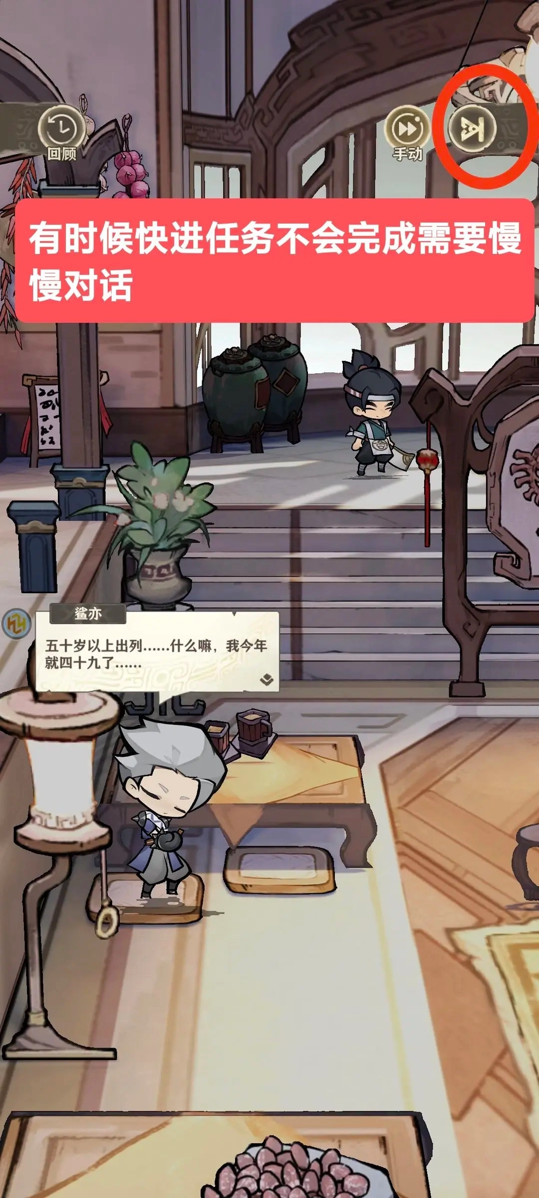 有时候完成任务时,如果点击右上角的跳过按钮,可能会遇到任务未完成的情况。这时,你需要耐心地点击屏幕,等待任务自动完成。
