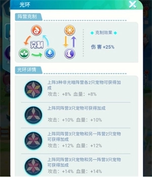 宠物阵营之间还存在克制关系,火、水、自然三系相互克制,光明、