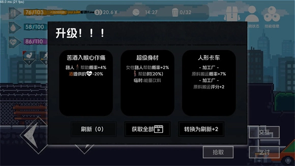 4、游戏中有四种等级系统体格、身手、智力、精神,每种等级的提升都会带来不同的增益,同时也会获得对应等级类型的随机技能(目前350种左右)来丰富游戏体验,游戏种的大多数行动都会获得一些经验。