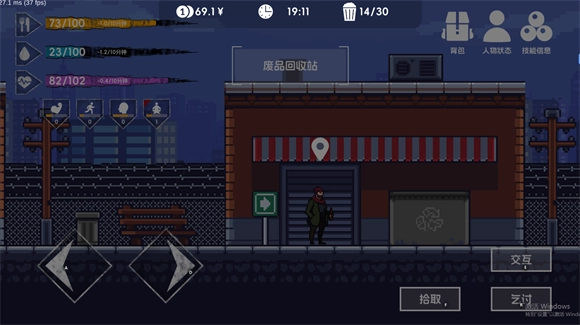 2、在进入夜晚后(21点)会消耗大量属性,如果是在户外则很有可能会在黑夜中倒下,所以请选择在收容所或者宾馆吧