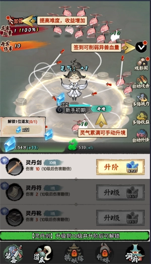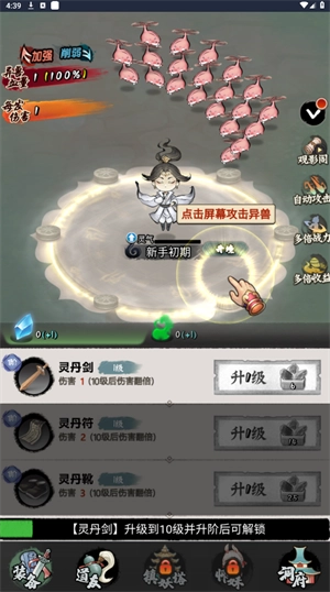 3、击杀也可以获得灵气,灵气值满了可以提升仙境