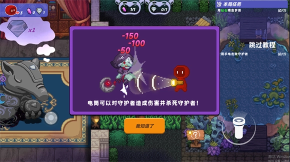 3、电筒按钮可以对守护者造成伤害并杀死守护者