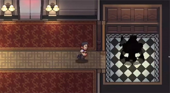 3、首先进入酒店前台,感叹号处可以获取信息,靠近点击右下角的手印即可查看、拾取等。