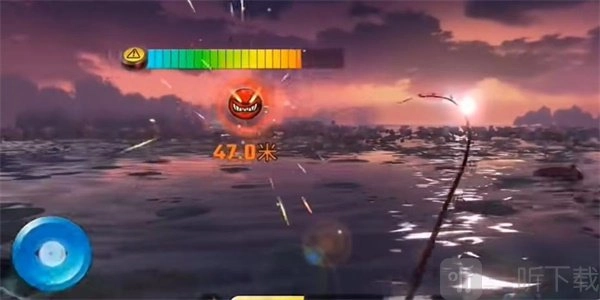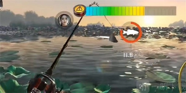 2. 在此处缓缓拉扯,通过消耗来积攒爆气,待黑影将小鱼吞食后,便开启爆气并收杆。