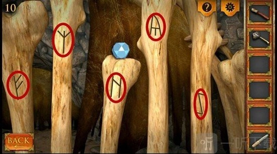 7、把宝石放在中间H符号的骨头上。