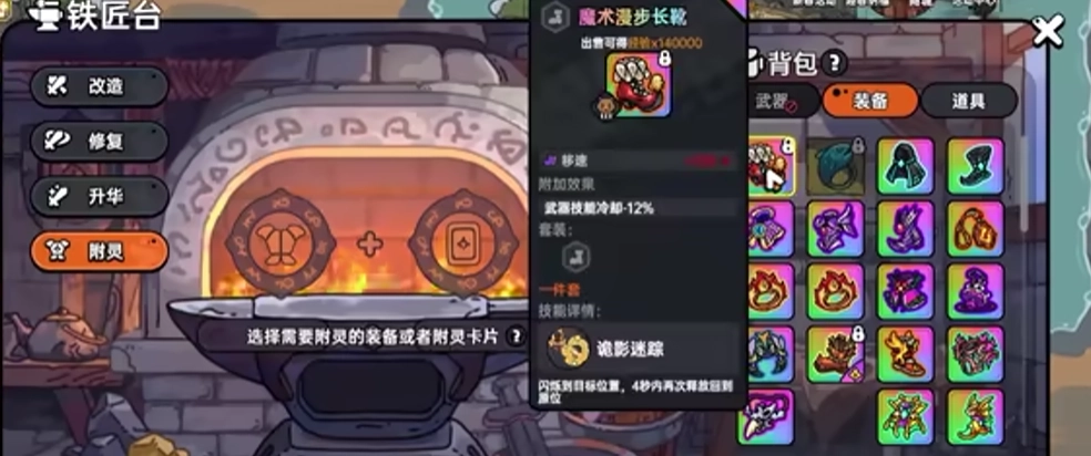 当我们启用附灵系统,能让自身角色变得更为强大。对于萌新而言,学习附灵首先得清楚怎样去附灵。附灵需借助铁匠台来完成。在游戏里打开铁匠台,会瞧见铁匠台左侧呈现4个不同选项,选择附灵后,接着将视线移到右边的装备商处,先挑选一件需要附灵的装备,随后再选一张卡片即可。