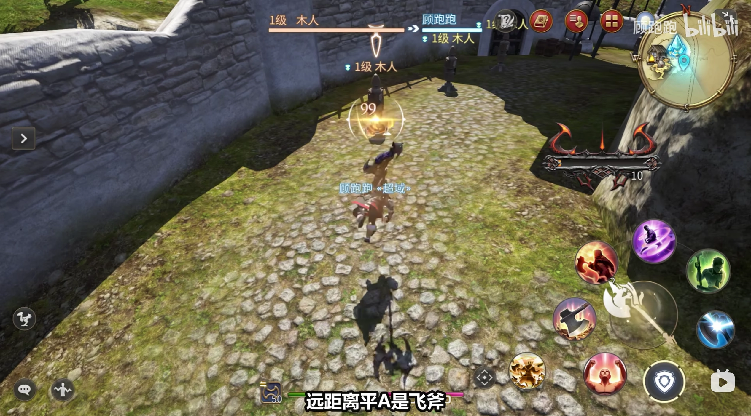 战士的普通攻击(平A)分为3段,每一段都是范围伤害(AOE),这种设定让拉怪变得更加便捷。当战士与目标保持一定距离时,平A会自动切换为远程的飞斧攻击。