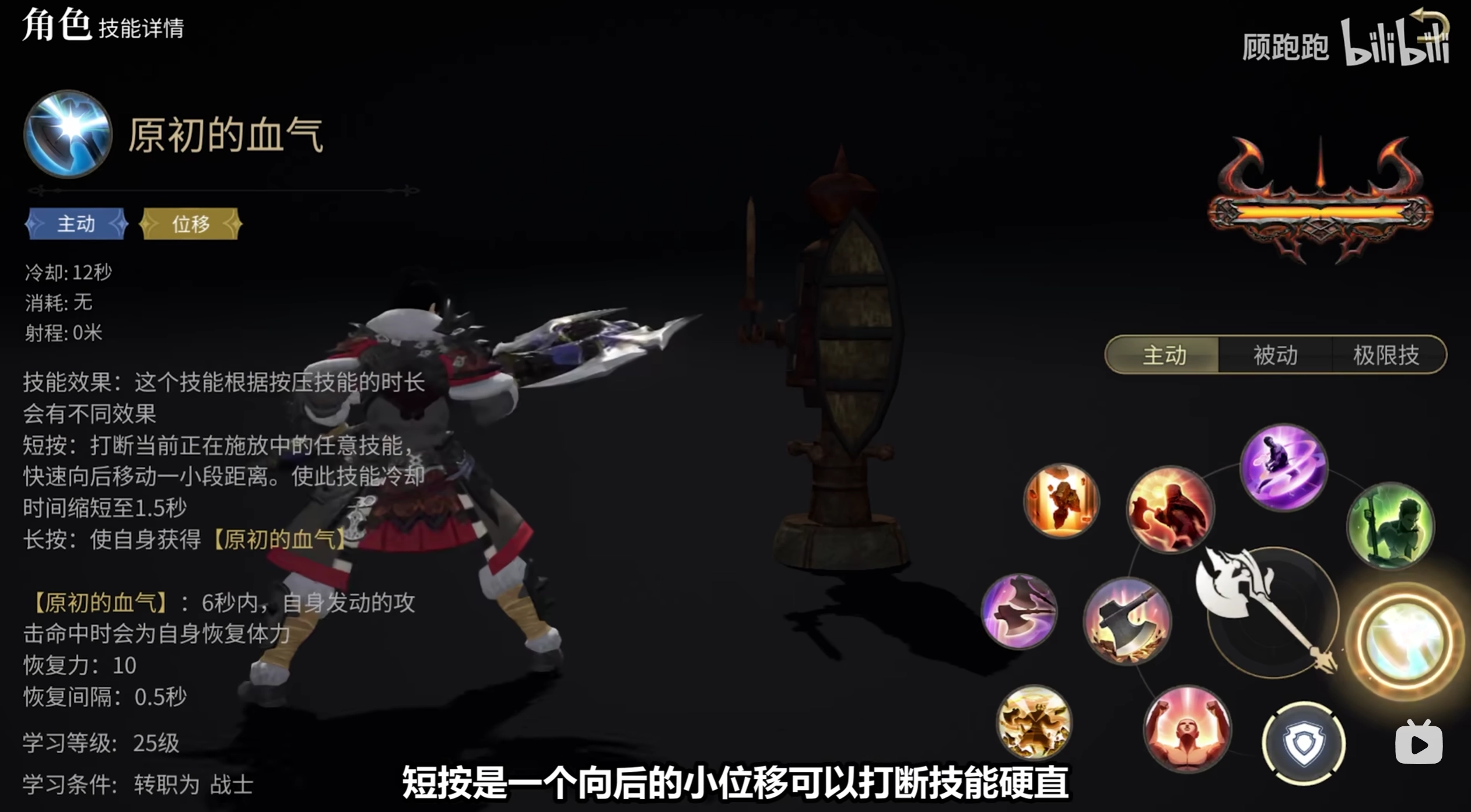 【原初的血气】具备两种操作效果。长按该技能,角色能够获得持续6秒的“吸血”效果;而短按的话,角色会产生一个向后的小位移,此位移可用于打断技能硬直。
