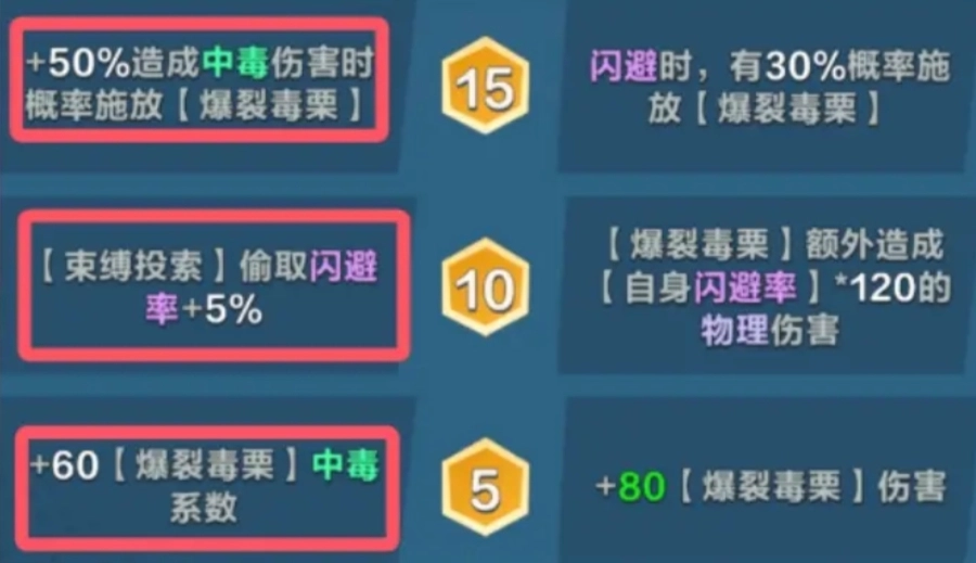 1当达到10级时,玩家可选择获得束缚投索偷取闪避率 +5% 的效果。此效果主要针对敌人闪避与中毒的联动效果。束缚投索偷取闪避率这一特性,能让小松鼠在与敌人对战时,进一步削弱敌人的闪避能力。在卡牌搭配上,森林游侠可充分借助闪避和中毒的叠加效果,从游戏中期开始展现出强大的战斗力。