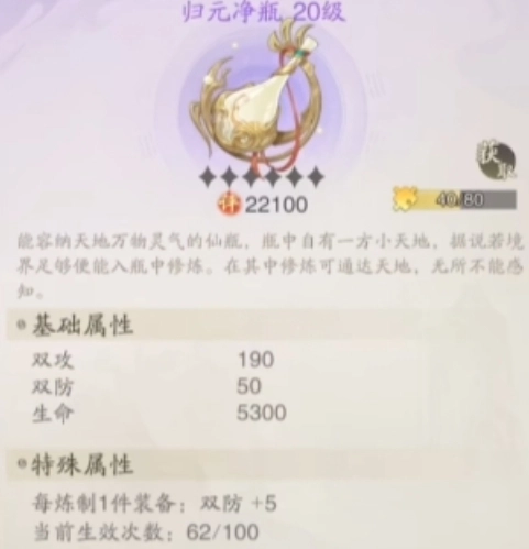 归元净瓶具备一项特殊功能,即能够提升玩家的生命值。当玩家持有归元净瓶时,每炼制一件装备,其生命值便会得到增加。而且,该效果能够持续叠加,直至达到一万数值。