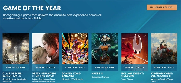 TGA2025的《玩家之声》评选环节已经启动,玩家能够通过官方渠道为自己支持的游戏投票。有部分玩家不太清楚具体的投票方法,接下来我会分享可以直接进行投票的入口,以便大家快速参与到活动当中。