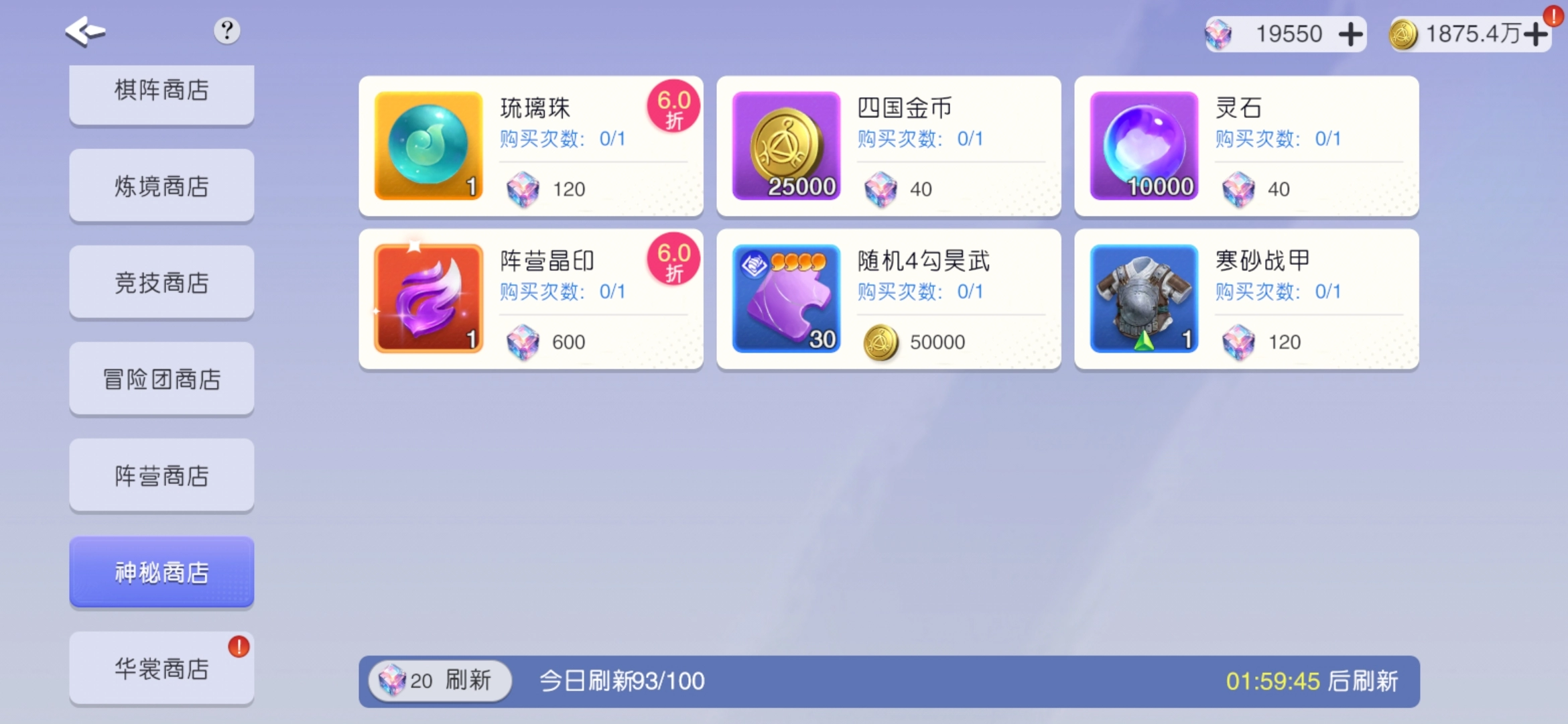 拥有足够数量的钻石就能进行抽卡,抽卡轮次为一次光属性一次暗属性交替。累计抽取120次,必定能获得光暗属性角色。另外,就像最后一张图展示的那样,神秘商店中会以600钻一个的价格售卖相关物品,且有一定概率刷新。