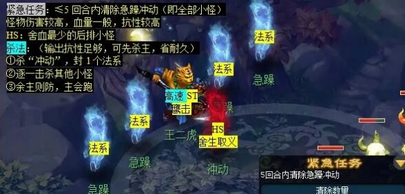 8、在狮驼岭坐标(109.22,28.13)处,按顺序与【大大王】、【虎煌】、【三虎】进行对话(需注意,虎煌和三虎处于同一个位置)