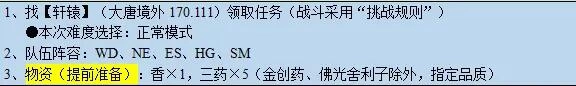 3、物资:香x1、三药x5(金创药、佛光舍利子除外,指定品质)