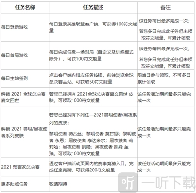 2自2021年9月27日起,至2021年10月31日23:59止,参与英雄联盟客户端内的【不破/不立试炼】活动,和LPL赛区的四支出征战队一起为2021英雄联盟全球总决赛做准备!