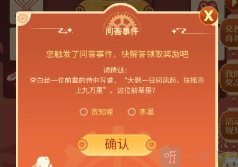 3、李白在写给一位前辈的诗里提到:“大鹏一日同风起,扶摇直上九万里”。请问这位前辈是谁?