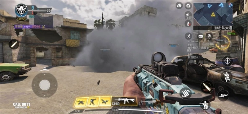 2、从出生点向右转,便是地图的中路,这里是战斗爆发最为频繁的区域。需要留意的是,对面二楼与防守方出生点的距离非常近,防守方的狙击手常常会在此处展开防守。在此,小编建议攻击方出发后,朝着前方车辆位置投掷一枚烟雾弹,这样既能防范狙击手架枪,还能迫使敌人从两侧房屋发起进攻,从而减轻我方的防守压力。