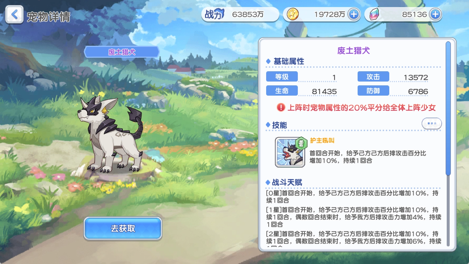 废土猎犬需注意:它不吃迷途、宠物、遗物以及鸣武等局外攻击力,然而吃局内攻击力加成。这意味着,你要是带只狗进入游戏,每回合后排能获得10%攻击力加成,同时不会损失宠物基础属性。仅在迷途使用宠物,虽然作用有限,但总比没有强。无需专门去练,有的话就派上场。