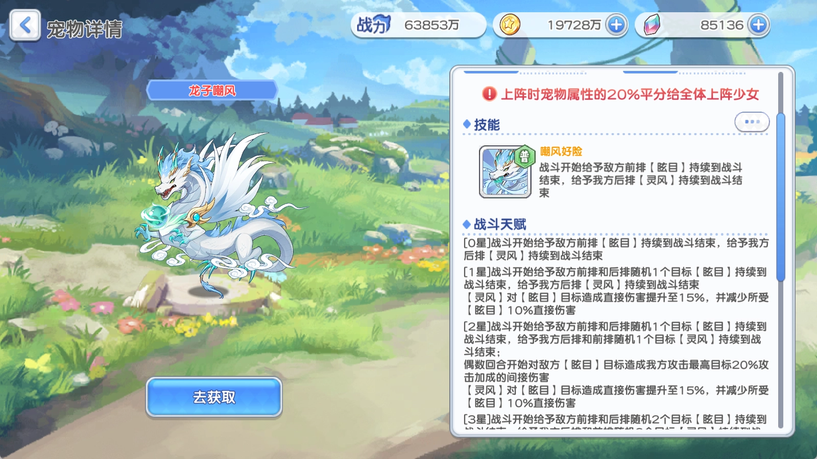 龙子嘲凤:性价比方面,最佳选择是1星。从1星提升到4星,效果并不显著,即便达到5星,提升幅度也不算很大。在所有PVE场景中都能使用,是平民玩家PVE红宠的首要之选。不过要留意,1星的龙子要求主C得站在后排。
