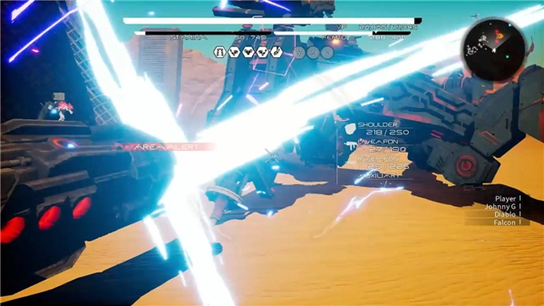 首先,玩家所操控的角色在游戏里被称作“outer”,是受到特殊能量影响的人类。由于月球陨落,人类世界中出现了全新的能量,AI也毫无征兆地对人类发起了攻击。玩家能够驾驶机甲在天空或地面自由作战,通过拾取敌人掉落的武器与部件,随时切换不同的战斗方式。