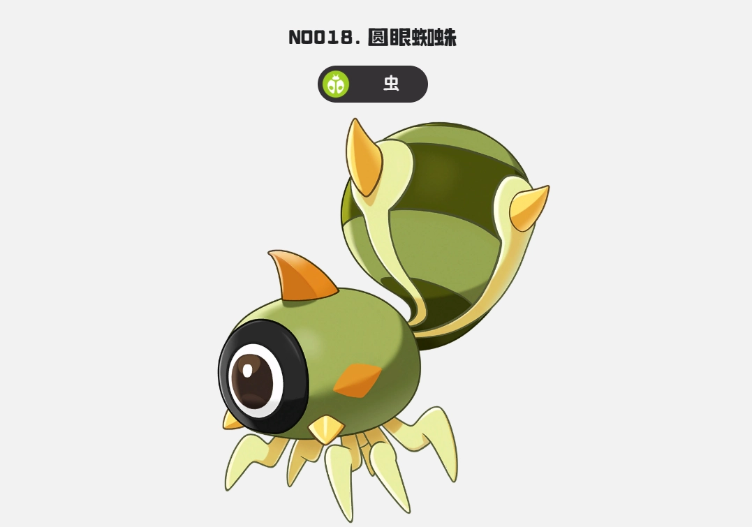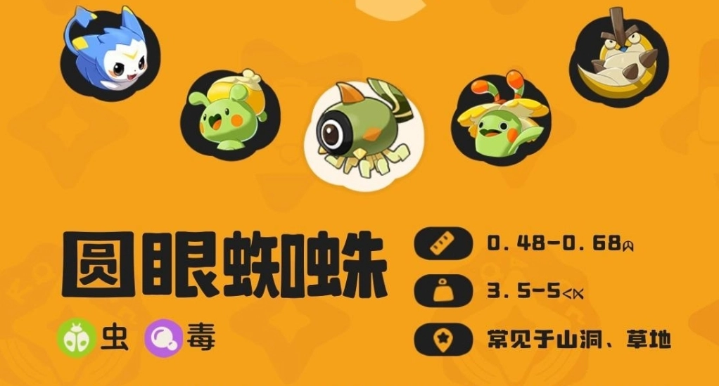 圆眼蜘蛛,从名字便能知晓它是一种蜘蛛。其模样极为可爱,属于昆虫系的精灵。别看它可爱,却身怀剧毒。战斗时,它直接施展技能,不仅能产生控制效果,还能降低敌人的速度。圆眼蜘蛛成年后,织网速度相当快,战斗中可凭借织网来捕获敌人。