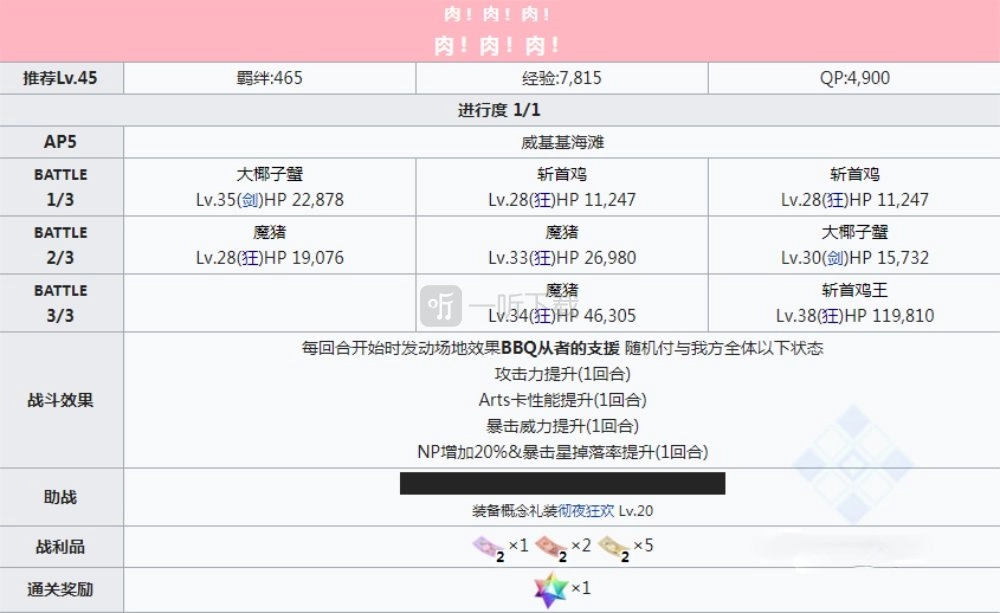 以上就是一听小编为大家介绍的fgo泳装三期复刻从者夏日庆典轻量版主线副本中“茂纳凯亚奇妙夜”的副本配置。下一篇将是最后一部分主线剧情,欢迎大家继续浏览!