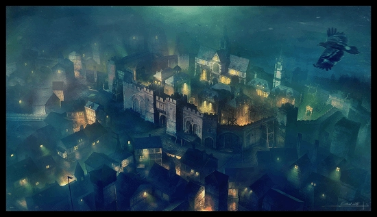 ·游戏在城市的鹅卵石街道上描绘了一个黑暗和阴郁的场景。