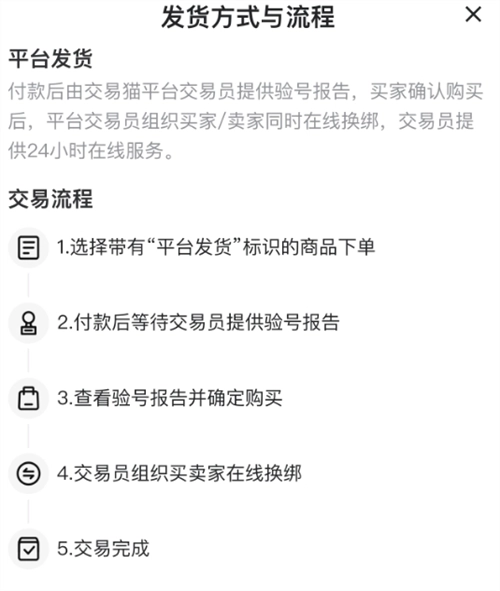 想必部分用户在交易账号时,或许尝试过其他平台,而这些平台往往存在不少弊端,比如下单后交易流程模糊不清,还缺乏客服的有效协助,一旦遇到问题就会十分头疼。为了给大家打造优质的交易体验,交易猫在这方面下了很多功夫,例如安排专属客服介入,全力协助买家完成账号验证;同时,换绑、发货等关键环节都由官方严格把控,全方位保障整个交易过程的安全。