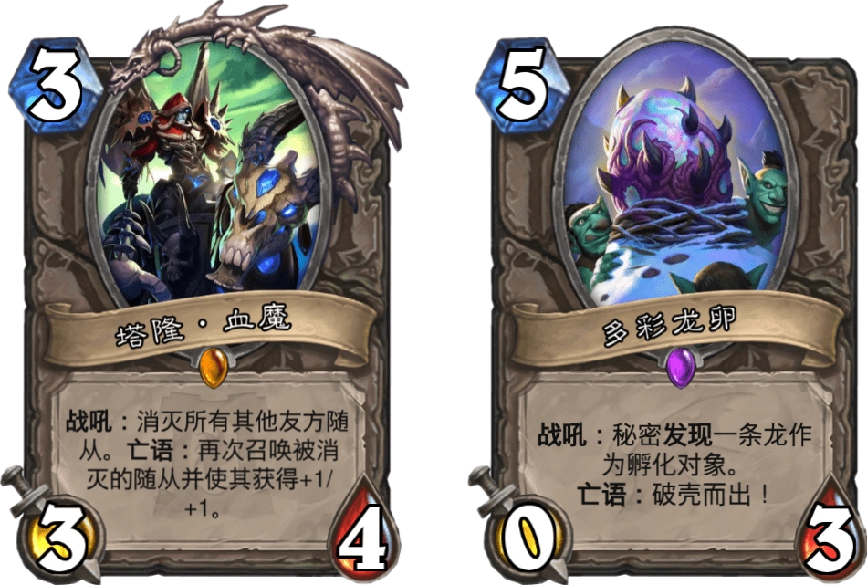 算上《炉石传说》版本更新已公布的卡牌,标准模式里可用的亡语随从有四十四张。不过,其中有一部分直接召唤时亡语会失效,比如塔隆·血魔和多彩龙蛋,其实不太适合与装备搭配。剩下的随从里比较强势的有卡塔图防御者、废料场巨像、魔药始祖龙和新卡暗月坦克等大概10张以上。我个人觉得这些亡语随从的质量和数量基本能撑起亡语猎的体系。