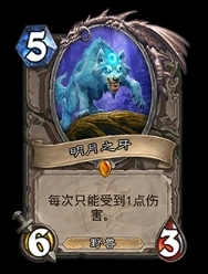 “明月之牙”是一张6/5的中立卡牌,其技能效果为:当玩家受到攻击时,每次所受伤害均限定为1点。