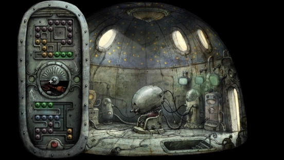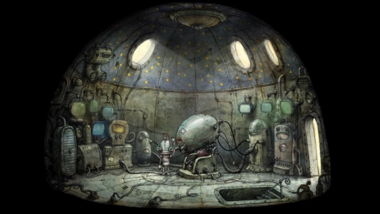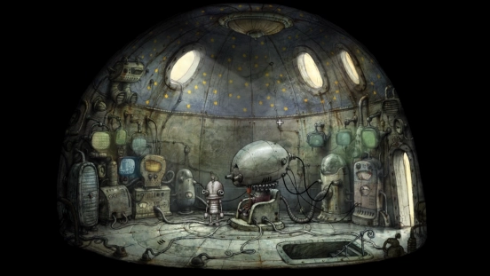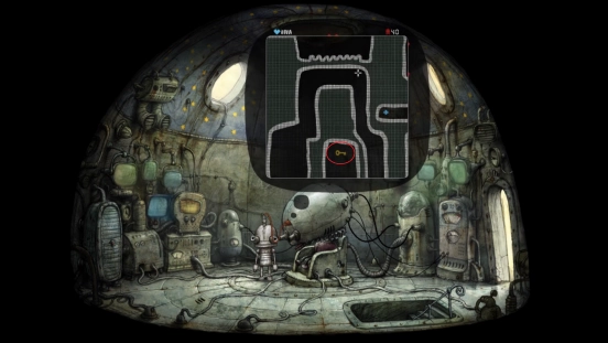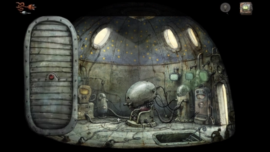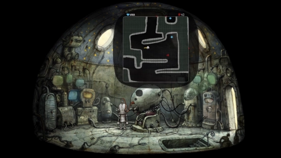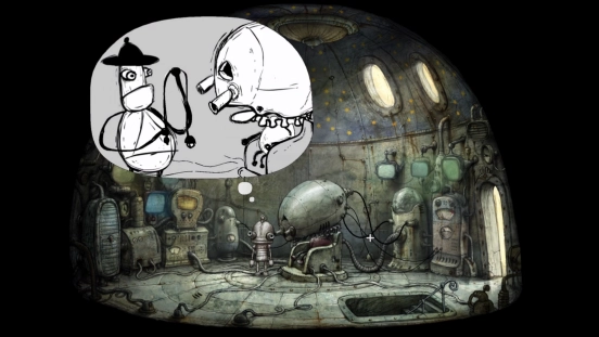 解决机械城的危机后,主角便能光明正大地踏上通往二楼的楼梯,距离揭开这座机械迷城的故事真相又近了一步。登上二楼,会看到中间坐着一个脑袋异常硕大的机器人,不过它似乎出现了故障。靠近它并点击,就能和它展开对话。