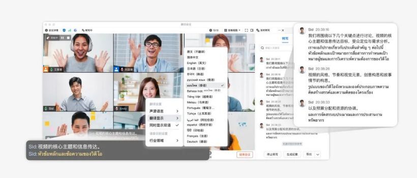 新增了对中文、英语、日语等17种语言的翻译支持,这一功能覆盖会议字幕、实时转写以及录制内容,可帮助跨国团队提高沟通效率。