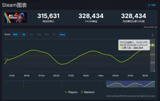 目前,据数据网站SteamDB消息,《Arc Raiders》的最高在线人数已突破32万,仍在持续增长中。