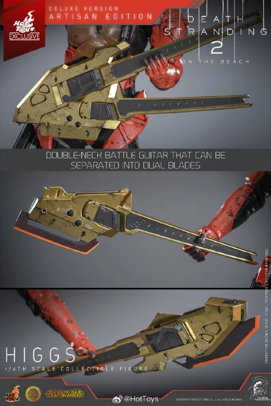 更值得一提的是,这个版本会独家附赠两款专属配件:一把能拆分成双刃武器的「金色双颈战斗吉他」,还有一件做工精巧、采用不规则剪裁的红色斗篷,精准还原希格斯初次登场时极具戏剧张力的斗篷造型,重现他如同舞台主角般降临的史诗时刻,带来无可比拟的收藏级体验。