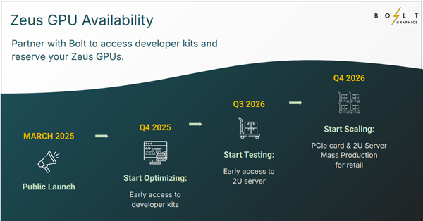 ZEUS显卡在过去两年里已多次亮相,相关企业此前也披露过其上市计划:去年3月正式发布,2025年第四季度将推出早期开发者套件;今年第三季度会推出2U服务器版本,第四季度则实现PCIe卡及2U服务器的大规模量产与上市。