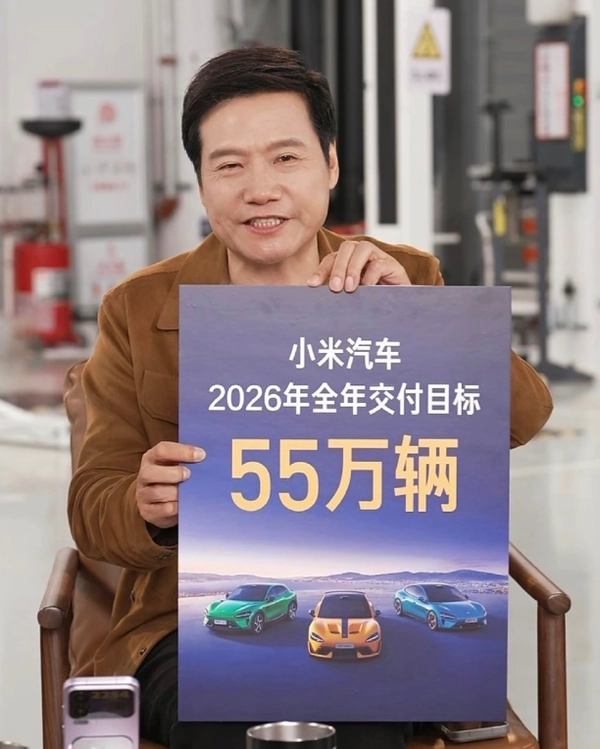在2026年1月3日的新年直播活动里,小米公司董事长雷军曾对外宣布,小米汽车将今年的交付量目标确定为55万辆。