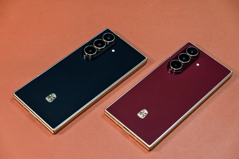 色彩对于器物而言,既是风格的外化呈现,也是气度的自然延展。心系天下三星W26所采用的“玄曜黑”与“丹曦红”两种配色,勾勒出截然不同的色彩特质。玄曜黑深邃似墨,金线在其间游走,尽显儒雅风范与笃定从容的姿态;丹曦红则红金交织,明艳如漆,又仿佛晨曦初现时的霞光,将典雅质感与炽热热情巧妙融合。这两种色调相互映衬、相得益彰,最终塑造出独树一帜的精神意境。