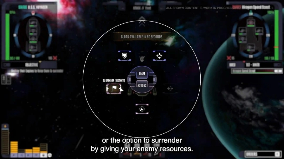 在这款作品的战斗环节里,玩家既无需像Tom Paris那样亲自驾驶飞船,也不用像Tuvok一般手动操作武器,而是要进行舰长层级的决策:确定打击目标与子系统、调整舰船方位与能量配置、判断鱼雷发射的时机等。这些决策相互作用,共同构建出贴合《星际迷航》内核的策略性战斗体验。