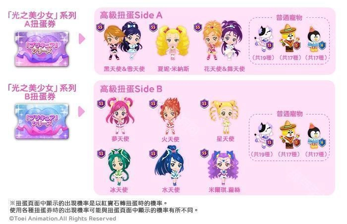 透过活动获得「光之美少女」系列扭蛋券,就有机会在高级扭蛋中获得合作角色(※活动图片仅供示意)