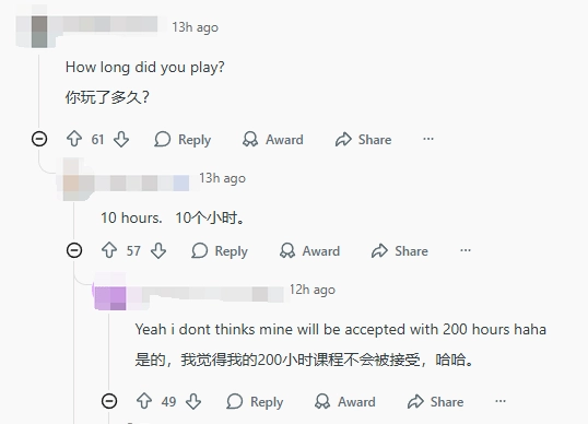 值得留意的是,他已经玩了10个小时,大大超出了一般的2小时时限。而另一位累计游玩200小时的玩家则直言:“我感觉我这种状况大概没什么希望了。”