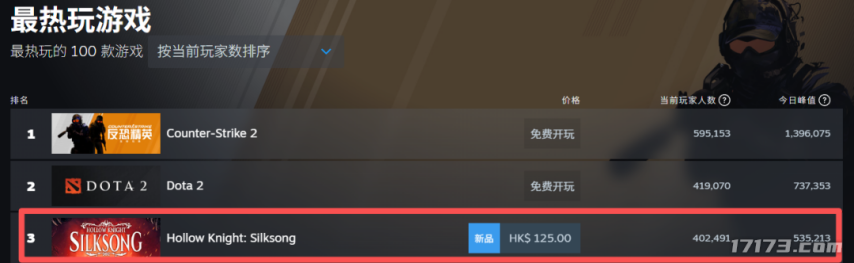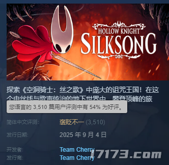 游戏发售后,同时在线人数峰值迅速突破53.5万人,远超前作《空洞骑士》的7.29万人。