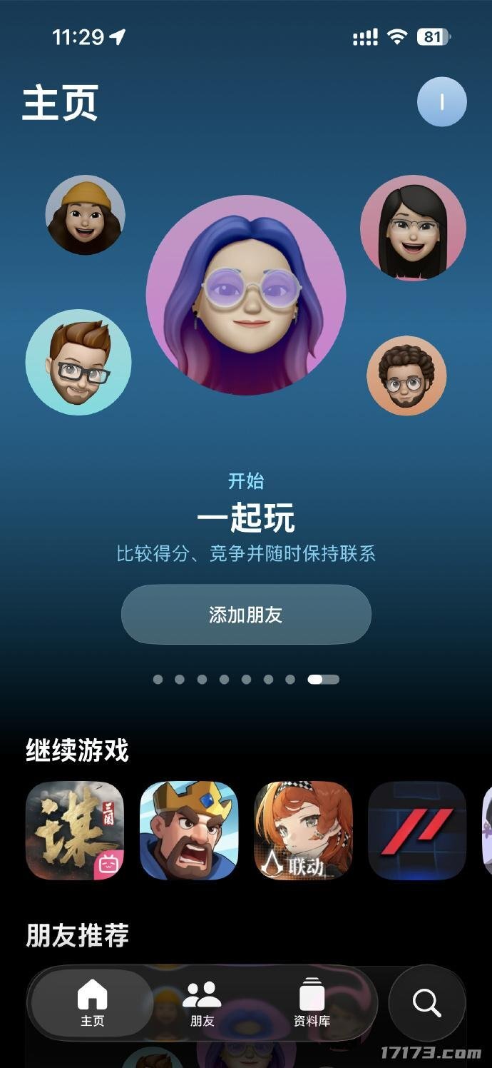 朋友:融合了社交功能,用户能够查看好友的动态以及游戏成就,还可以借助「信息」应用直接邀请好友进行联机游玩;