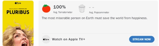 目前,《Pluribus》的前两集已经上线,并且在烂番茄平台上取得了满分100%的成绩。无论是评论家还是观众,几乎都一致评价它为“年度最佳剧集”。