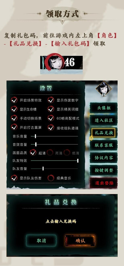 除此之外,其他后续进入游戏的玩家可通过以下三步兑换专属游戏礼包:点击游戏左上角的“角色”选项,进入后找到“礼品兑换”入口,最后输入礼包码即可。在此为大家提供两个礼包码:FPEFLRIR和XRFFFWBO,看到这篇文章的玩家们赶紧去尝试兑换吧。