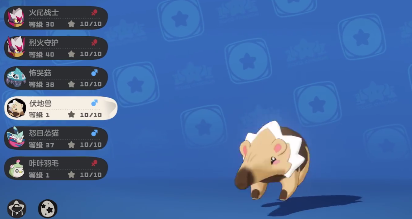 在游戏里,伏地兽属于土属性,体重为15.6公斤。作为初始宠物,它能够进化成食蚁兽或者弯嘴兽,每次进化都会带来很强的能力提升。